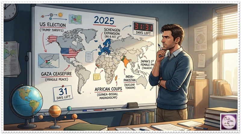 Chỉ còn vỏn vẹn 31 ngày ngắn ngủi trong tháng 12 để nhân loại vừa hoàn tất những công việc dang dở của năm cũ, vừa tổng kết lại vòng quay hỗn loạn của Trái Đất trong vũ trụ bao la, với Thời Gian vô tận và Không Gian vô biên. Năm 2025, thế giới đã trải qua những cột mốc đáng nhớ: từ những cuộc bầu cử thay đổi diện mạo chính trị ở hàng loạt quốc gia như Mỹ với chính sách thuế quan của Tổng thống Trump làm rung chuyển thương mại toàn cầu, đến các thỏa thuận hòa bình mong manh ở Armenia-Azerbaijan hay Gaza, nơi mà sau những tháng ngày bom đạn, nạn đói và cáo buộc diệt chủng, con người ta mới nhận ra giá trị của sự im lặng. Ở châu Âu, Bulgaria và Romania gia nhập Schengen, mở rộng biên giới tự do; ở châu Á, Nhật Bản có nữ Thủ tướng đầu tiên Sanae Takaichi, trong khi Ấn Độ và Pakistan suýt lao vào xung đột hạt nhân. Còn ở châu Phi, các cuộc đảo chính ở Guinea-Bissau và Madagascar nhắc nhở về sự bất ổn kéo dài. Tất cả những sự kiện ấy, như những mảnh ghép lộn xộn, buộc chúng ta phải suy ngẫm về hành trình của nhân loại trong một năm đầy bất ngờ.